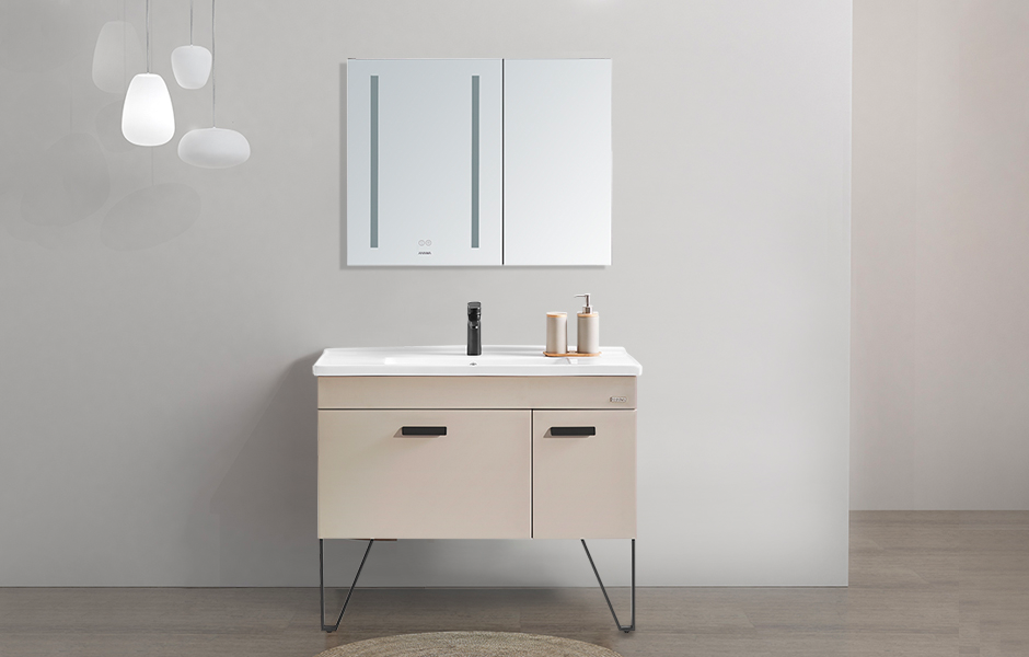 2.智能镜柜,一键除雾,LED柔和灯光,光线均匀清晰照亮您的美;内部合理分层,梳妆收纳两不误。