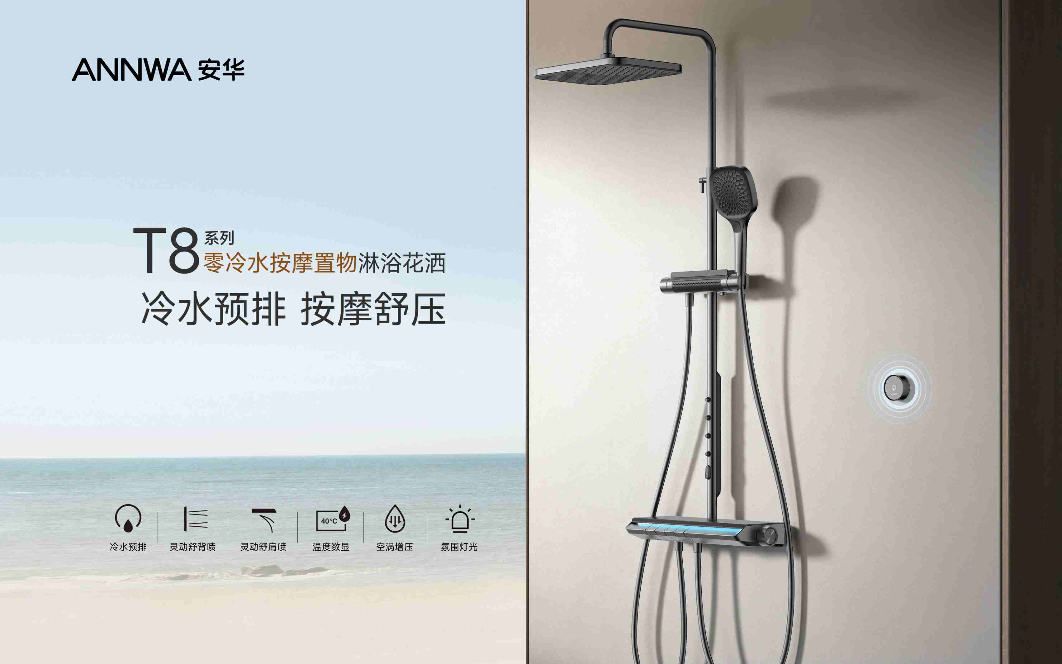 精准洞察久坐办公与运动人群的深层需求,安华T8零冷水按摩花洒创新性实现“零冷水”的沐浴体验,并融合肩喷、背喷、手持等多模式按摩功能,为用户提供高效缓解疲惫、深度放松身心的居家SPA仪式。